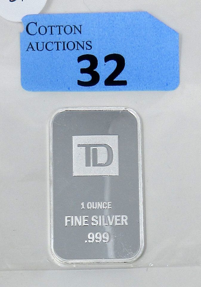 1 Oz .999 Silver TD Bank Investor Bar