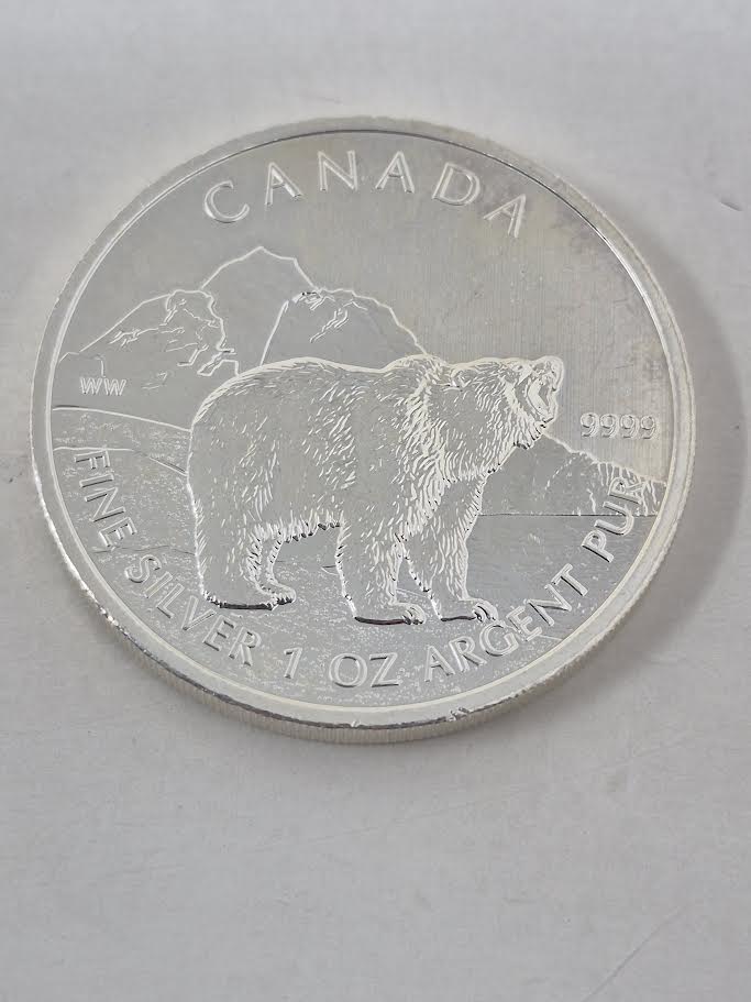 1 Oz .9999 Silver 2011 Canada Grizzly Bear Coin