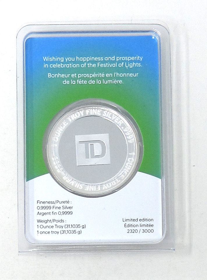 TD Bank. Colourized. Mint limited to 3000. 2-sided design. In assay card. Tax exempt