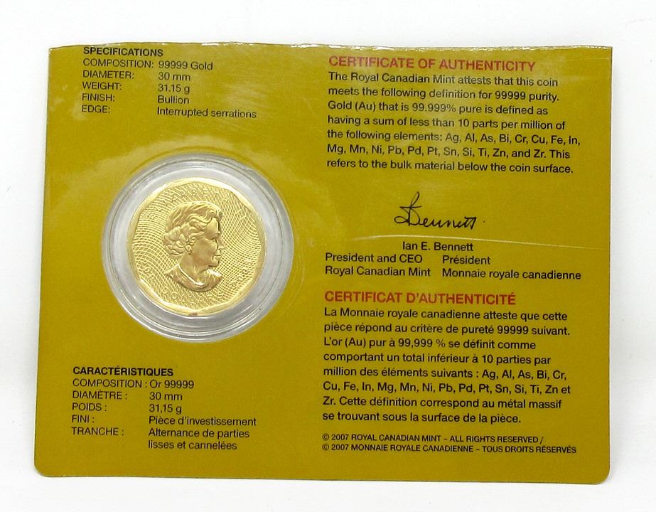 Royal Canadian Mint. Certified & sealed in Assay card. Tax exempt.