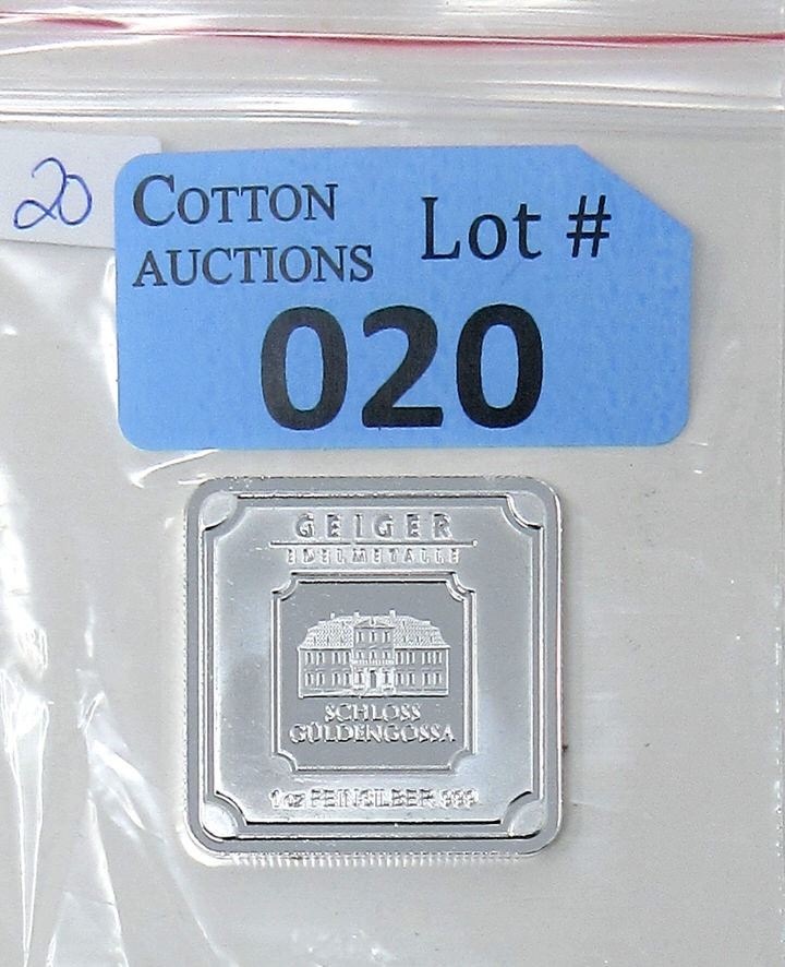 1 Oz. Geiger Edelmetalle .999 Fine Silver Bar
