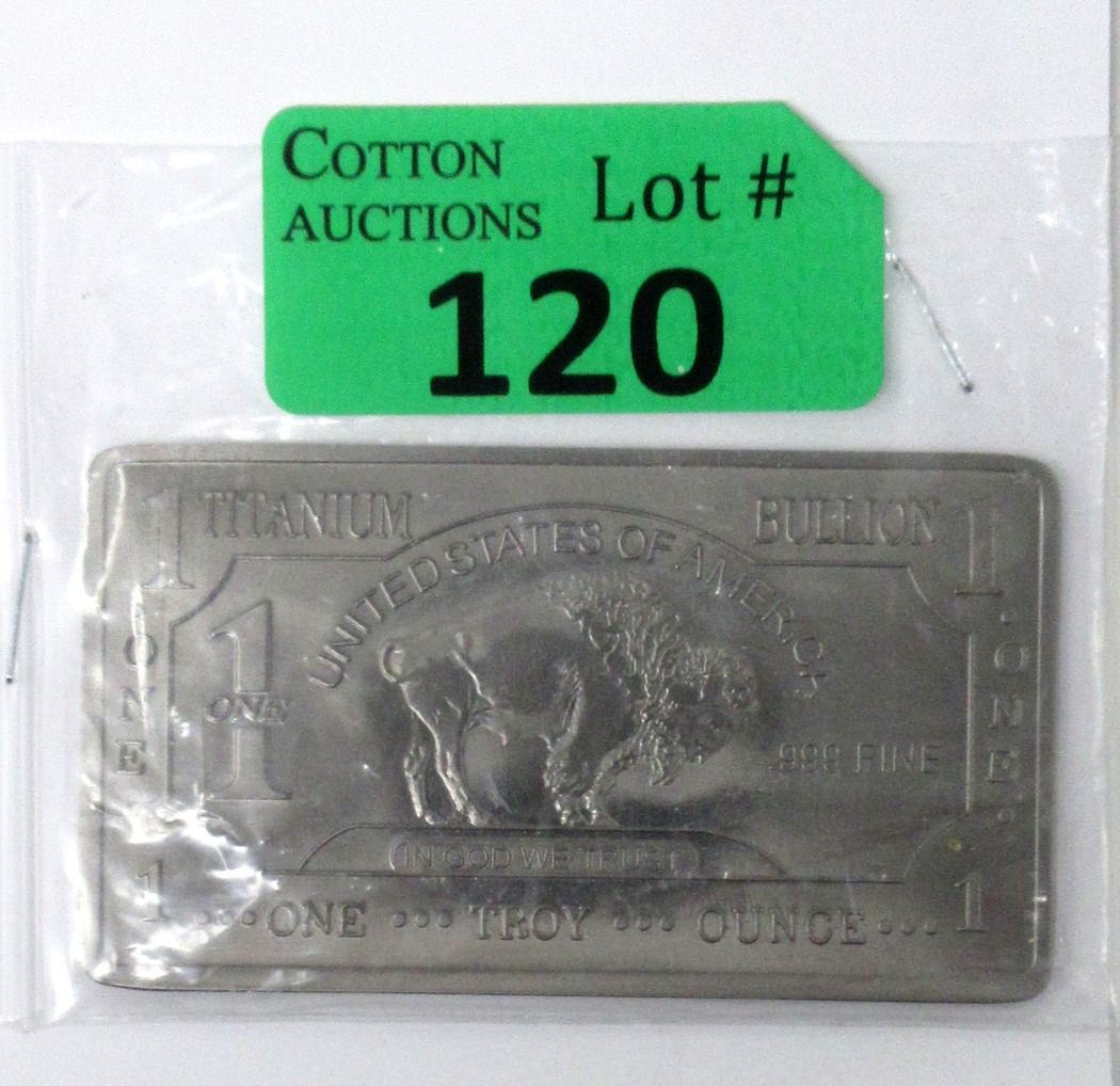 1 Oz. USA Mint .999 Fine Titanium Buffalo Bar