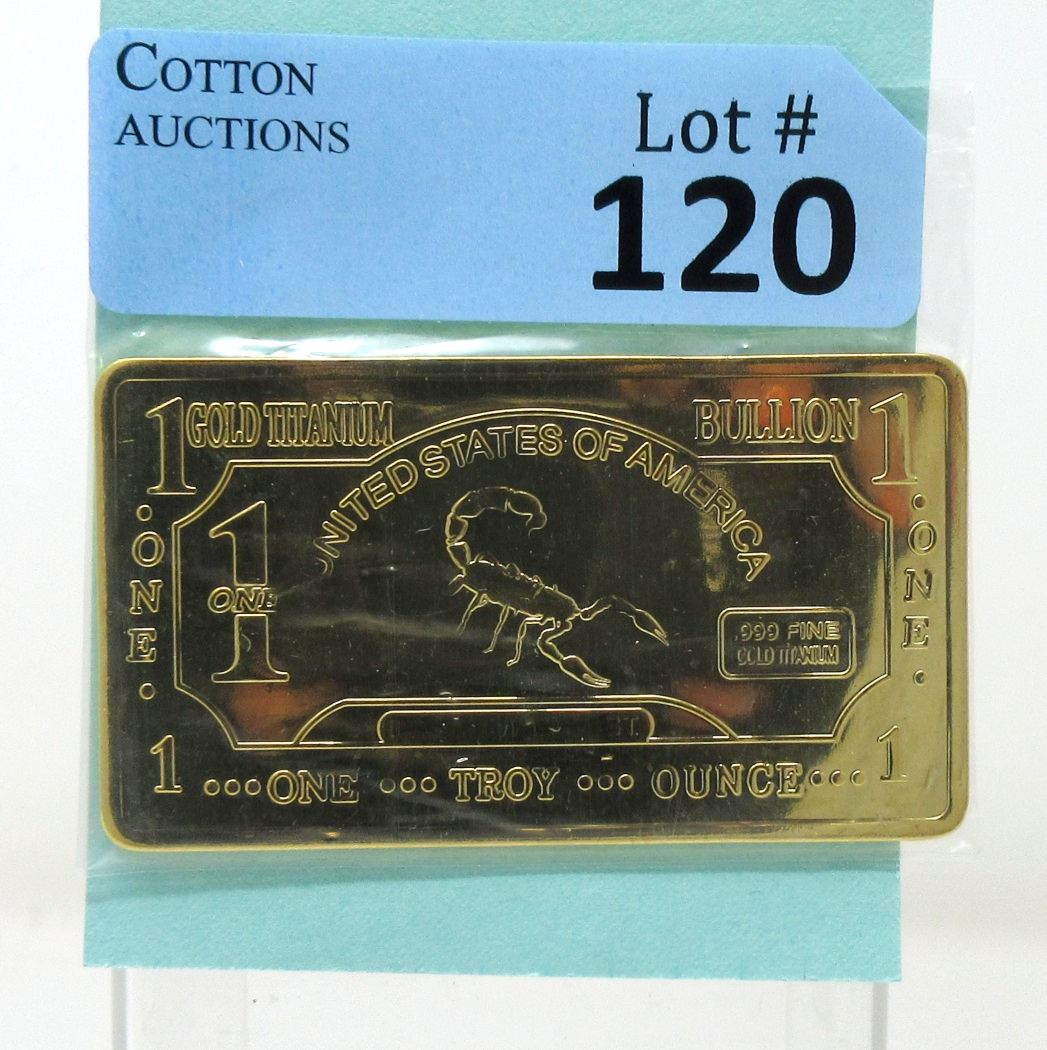 1 Oz. USA Mint .999 Titanium Bullion Gold Clad Bar