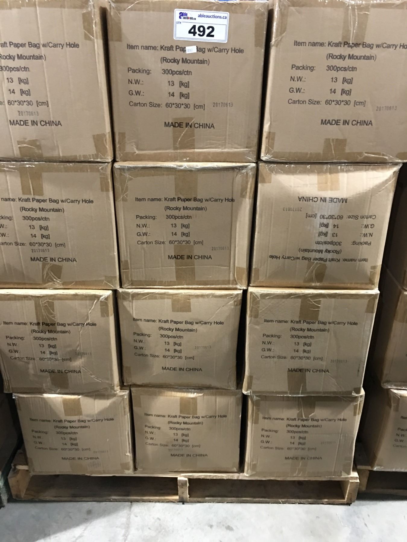 1 PALLET OF 24 BOXES OF LOGOED CRAFT PAPER BAGS WITH CARRY HOLE 11" X 11"