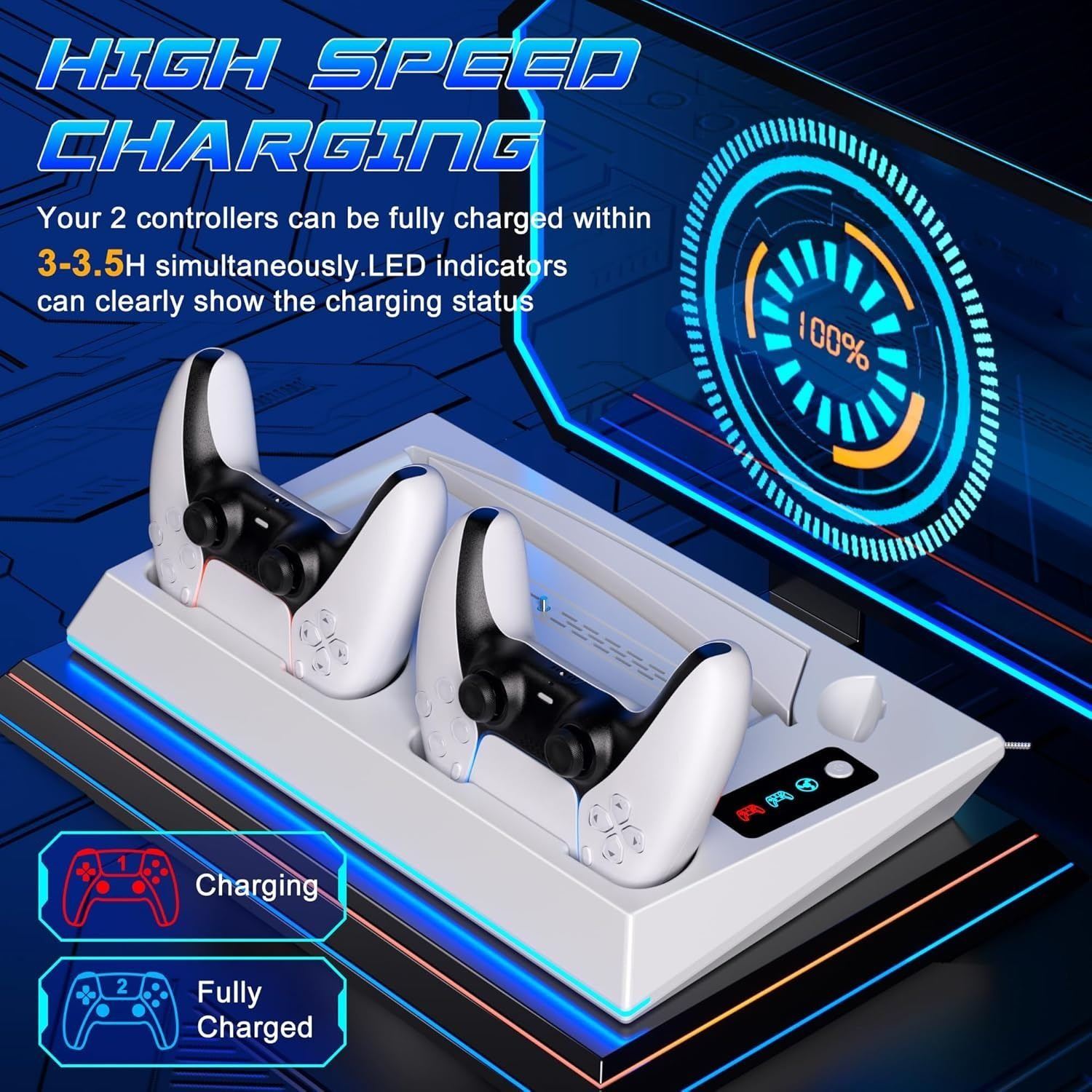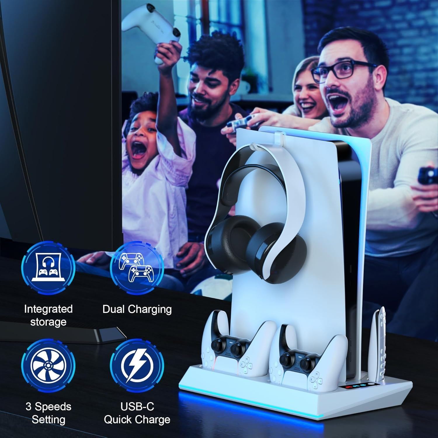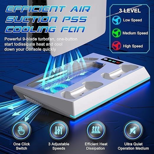 - ponkor ps5/slim/pro stand and cooling station for ps5 controller charger for dual sense & edge controller, ps5 controller charger station with 3-level silent cooling