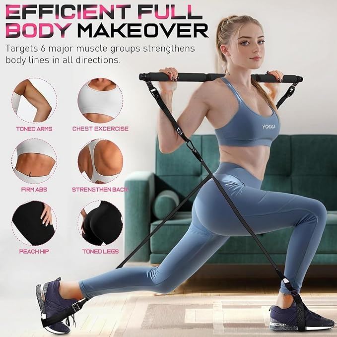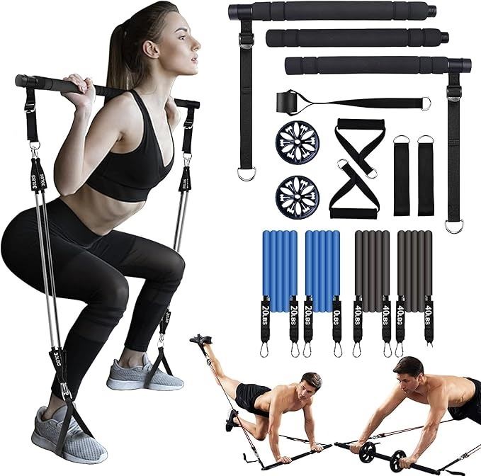 - Pilates Bar Kit with Resistance Bands Ab Roller for Abs Workout.Pilates Stick for Exercise System Foldable Gym Strength Training Equipment Attachments OUPLIFY Home Gym for Men and Women(Pil-1)