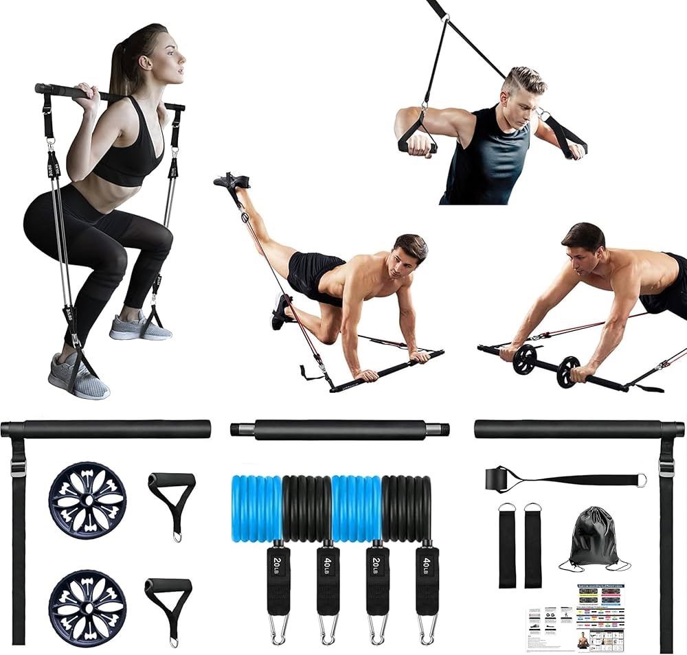 - Pilates Bar Kit with Resistance Bands Ab Roller for Abs Workout.Pilates Stick for Exercise System Foldable Gym Strength Training Equipment Attachments OUPLIFY Home Gym for Men and Women(Pil-1)