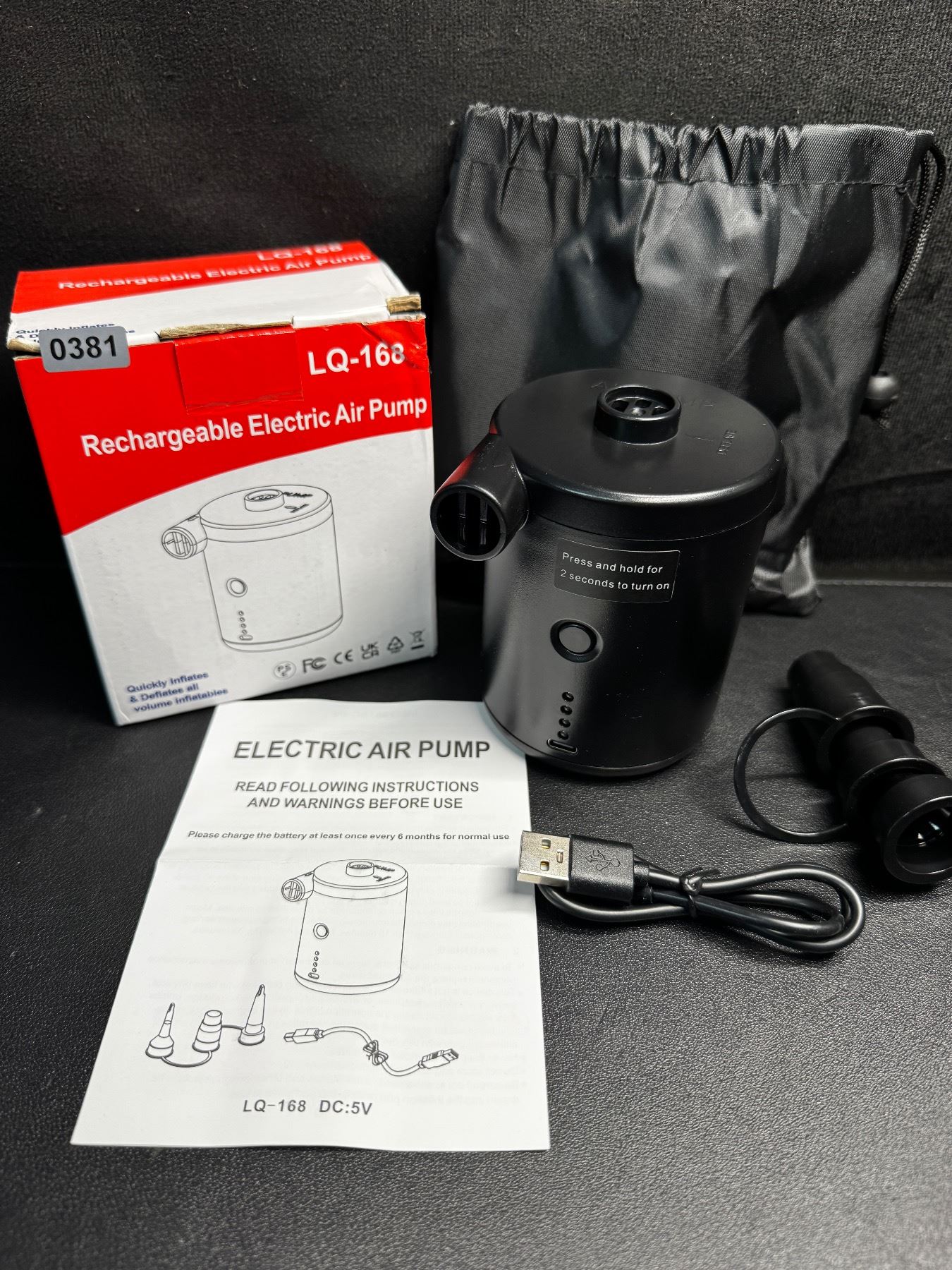 1 Portable Rechargeable Electric Air Pump - Cordless Quick Inflator/Deflator Pump - Brand New!