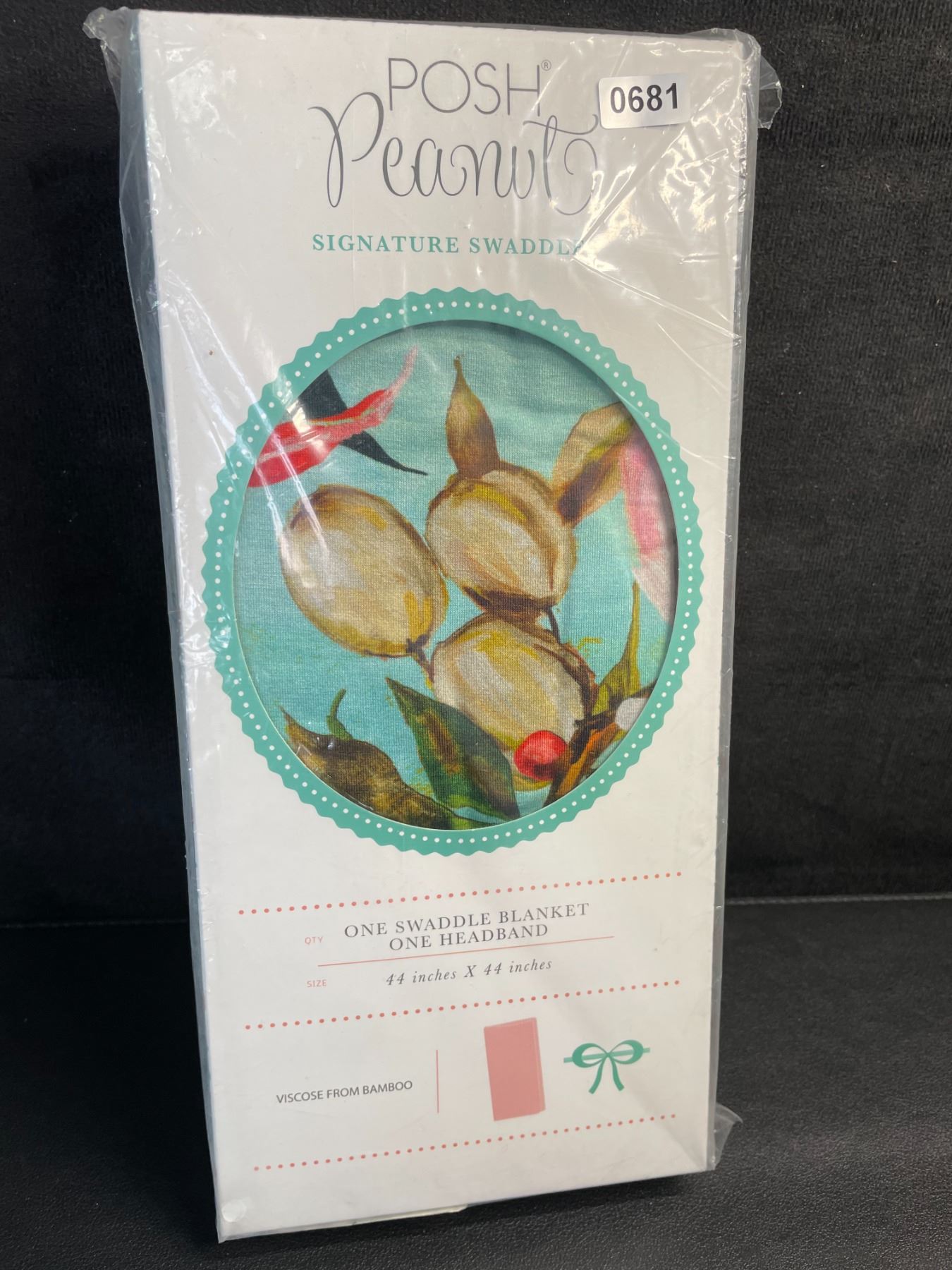 1 Posh Peanut Signature Baby Swaddle Set (Tuscan Teal) 1 Swaddle Blanket + 1 Headband - New
