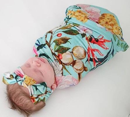- Posh Peanut Tuscan Teal Floral Swaddle Blanket & Headband Set