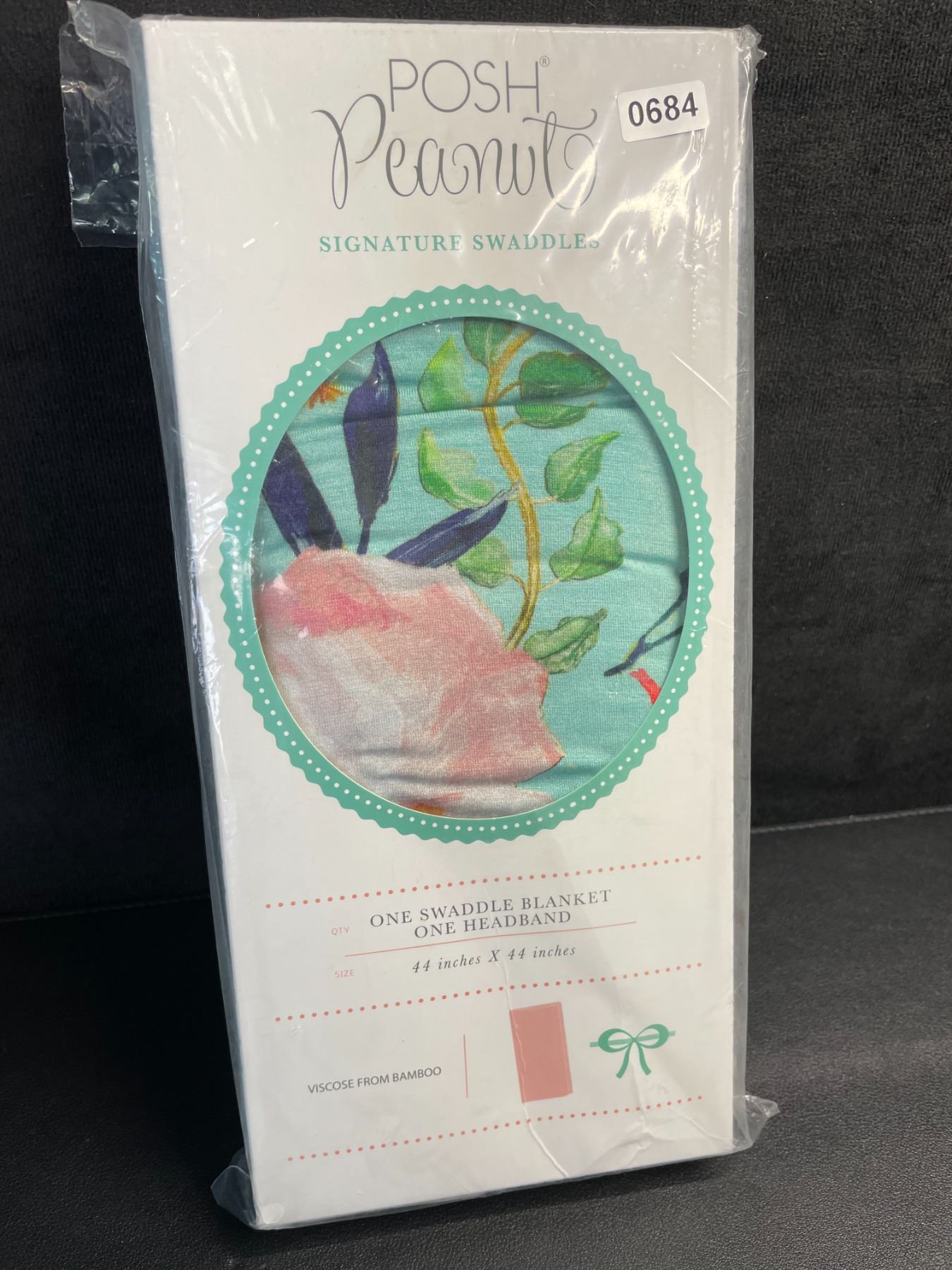 1 Posh Peanut Signature Baby Swaddle Set (Tuscan Teal) 1 Swaddle Blanket + 1 Headband - New
