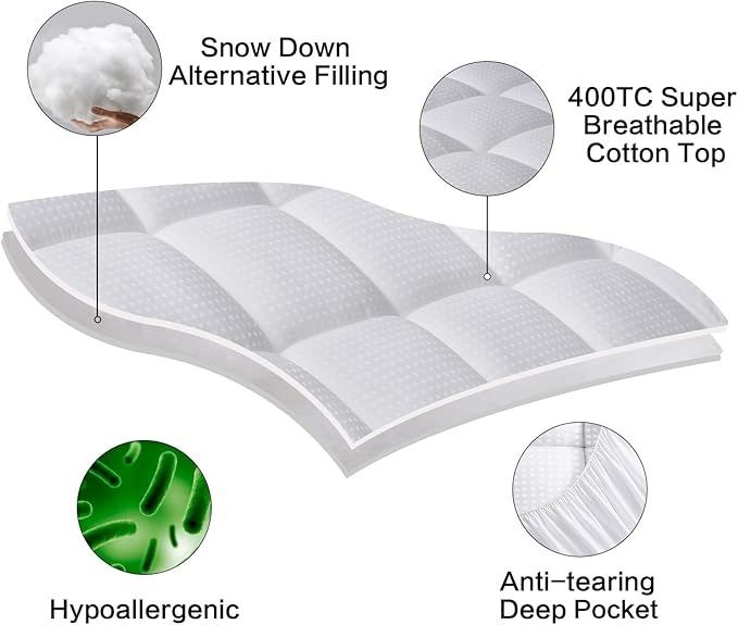 - Deep-pocket queen size mattress topper (60 x 80" queen size)