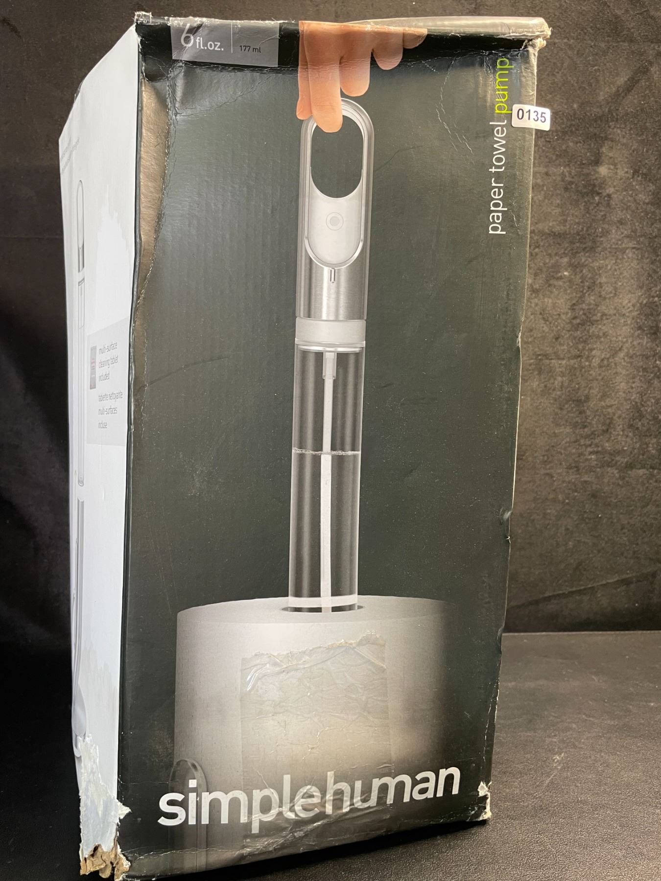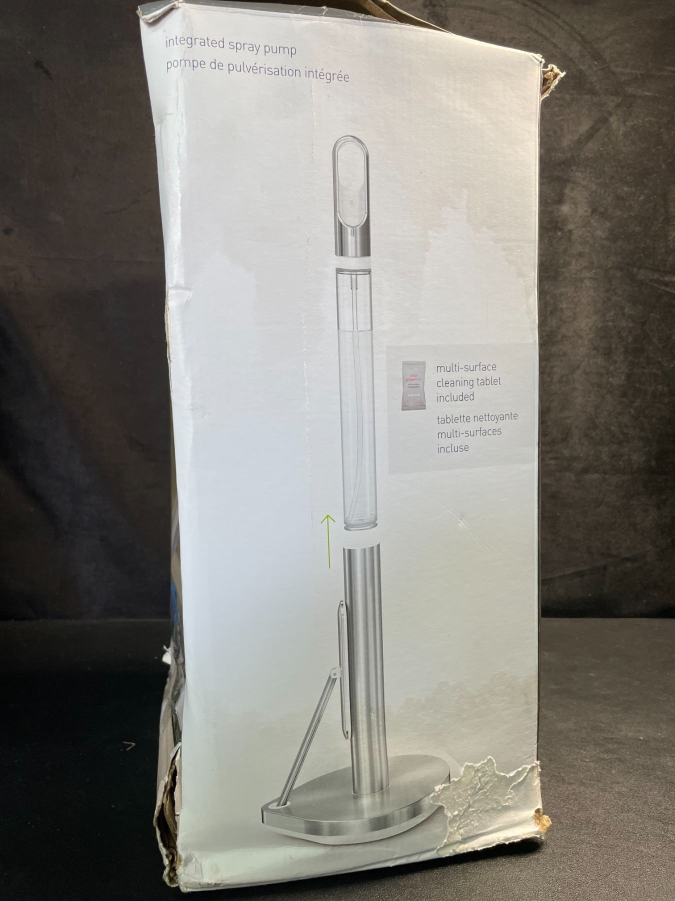 - simplehuman Paper Towel Pump, Standing Paper Towel Holder with Spray Bottle, Brushed Stainless Steel