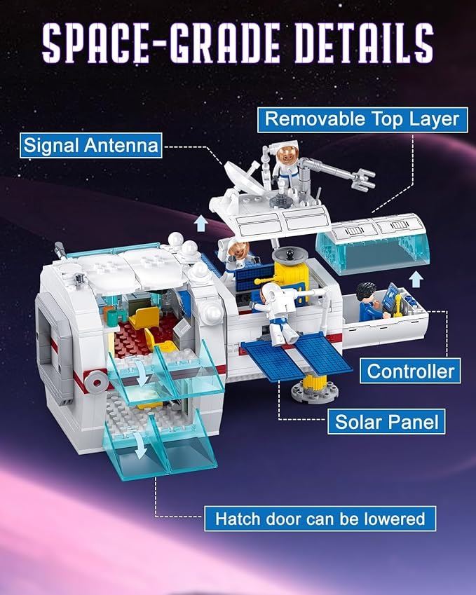 - City Space Station Building Set, Space Rocket Science Lab Building Kit with 4 Astronaut Minifigures, STEM Gift Toys for Boys 6-12, Compatible with Lego Space Shuttle, 502 PCS