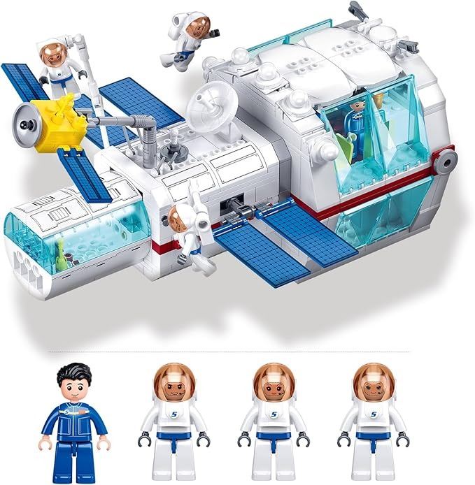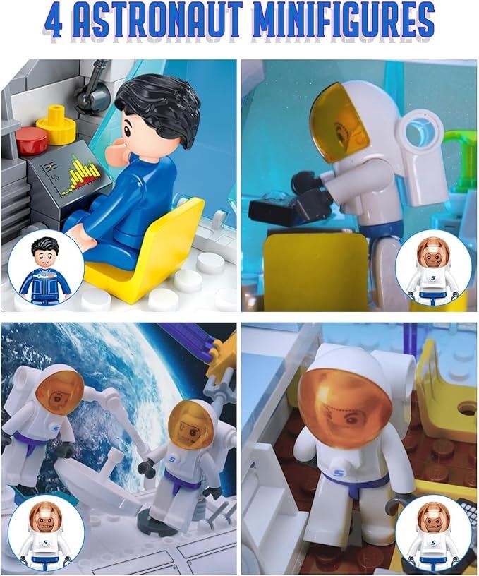 - City Space Station Building Set, Space Rocket Science Lab Building Kit with 4 Astronaut Minifigures, STEM Gift Toys for Boys 6-12, Compatible with Lego Space Shuttle, 502 PCS