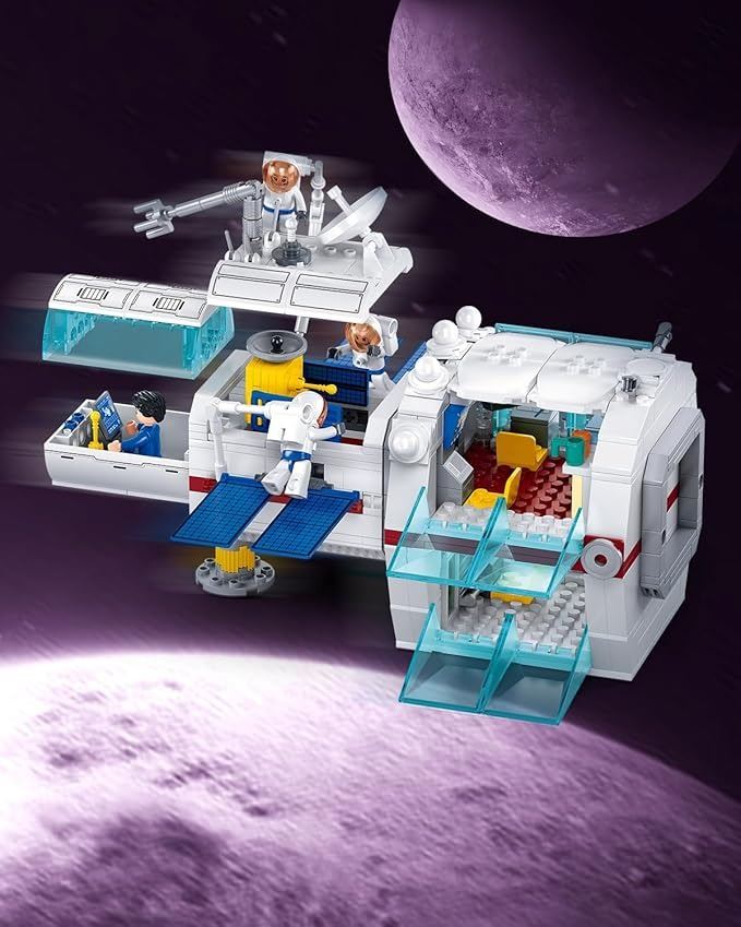 - City Space Station Building Set, Space Rocket Science Lab Building Kit with 4 Astronaut Minifigures, STEM Gift Toys for Boys 6-12, Compatible with Lego Space Shuttle, 502 PCS