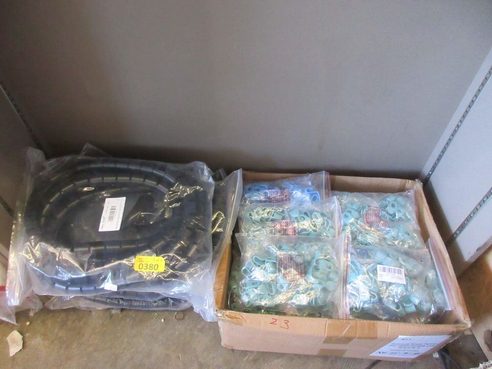 Stack of six 10 ' Cable Wraps and Box of 23 Bags of Cable Clips