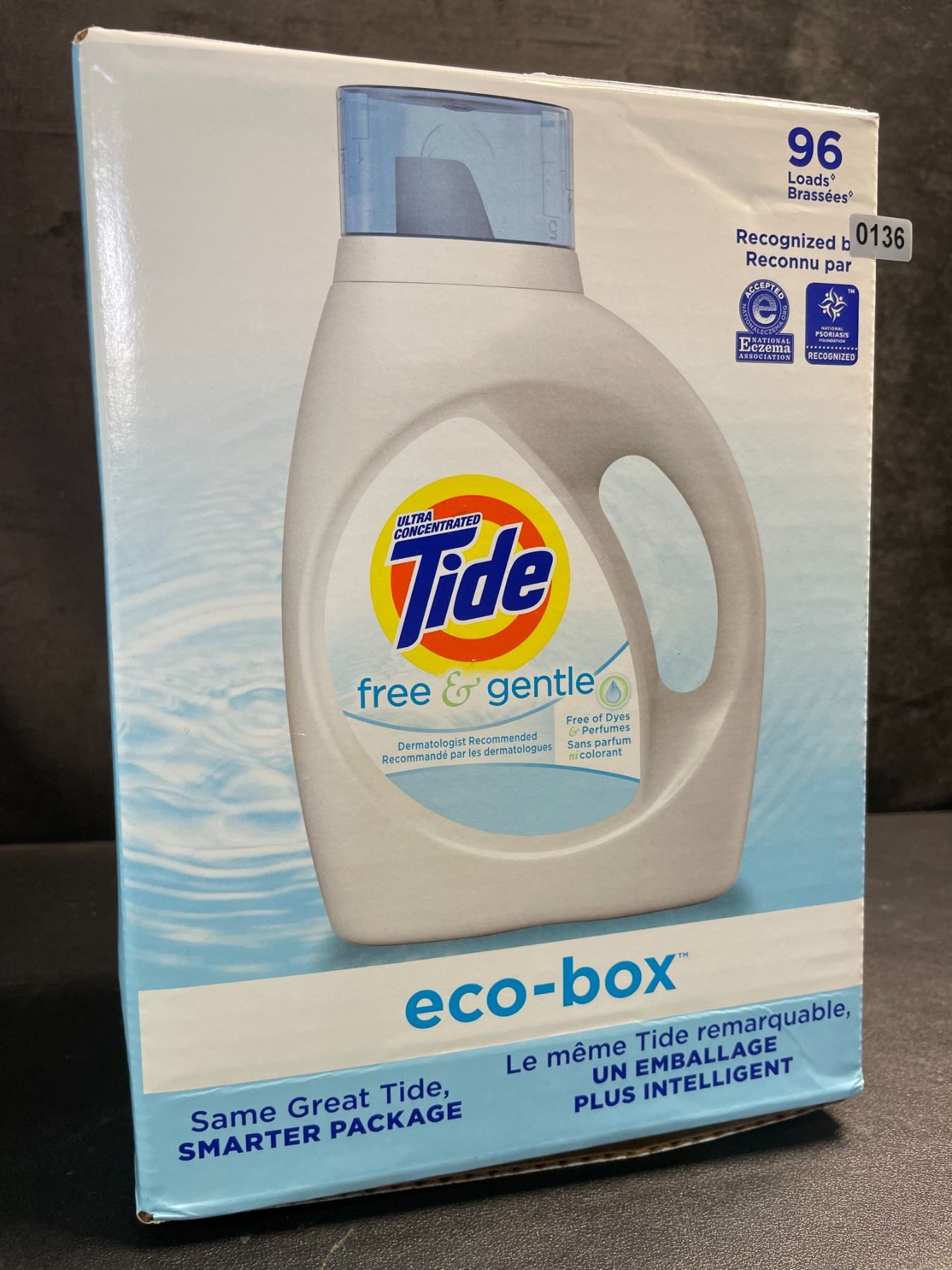 1 Tide Ultra Concentrated Free & Gentle Eco-Box Liquid Laundry Detergent - 3.1L/96 Loads - New