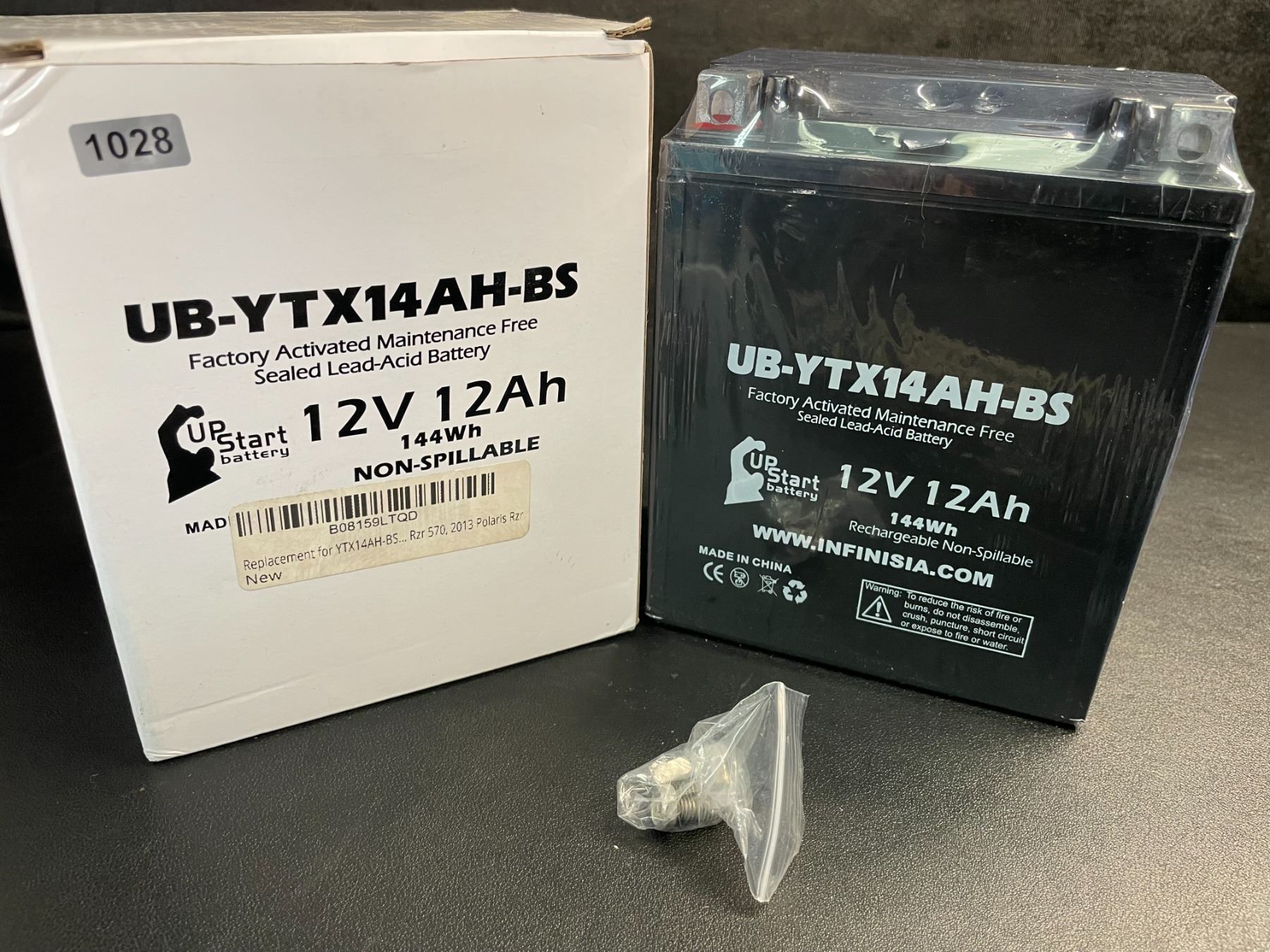 - UB-YTX14AH-BS Battery - Factory Activated, Maintenance Free, Motorcycle Battery - 12V, 12AH, UpStart Battery Brand