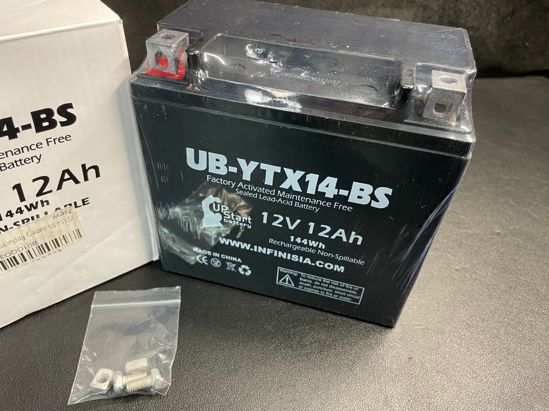 - YTX14-BS Battery - Motorcycle Battery, ATV Battery 12V 12AH, UTV, 4 Wheeler, Snowmobile, Powersports Batteries - Compatible with Honda Rancher 350, Buell Blast, Yamaha - Sealed Lead Acid 12 Volt AGM