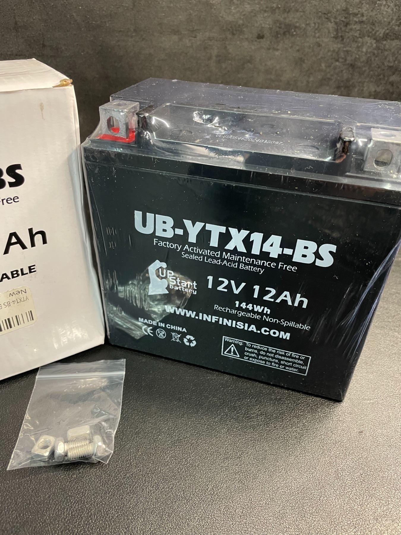 - YTX14-BS Battery - Motorcycle Battery, ATV Battery 12V 12AH, UTV, 4 Wheeler, Snowmobile, Powersports Batteries - Compatible with Honda Rancher 350, Buell Blast, Yamaha - Sealed Lead Acid 12 Volt AGM