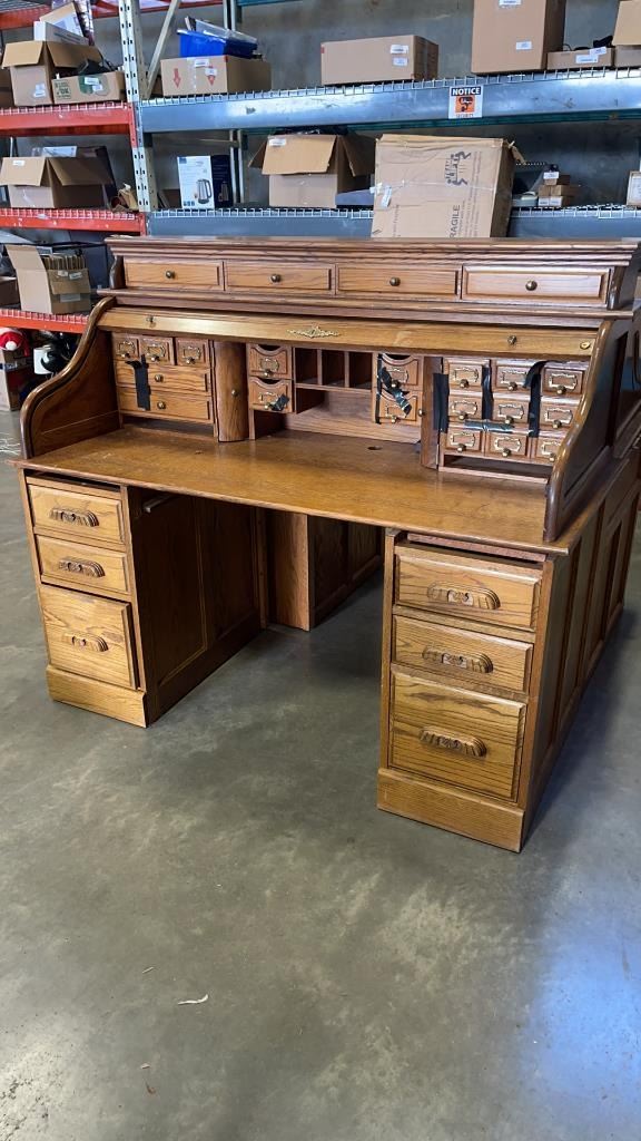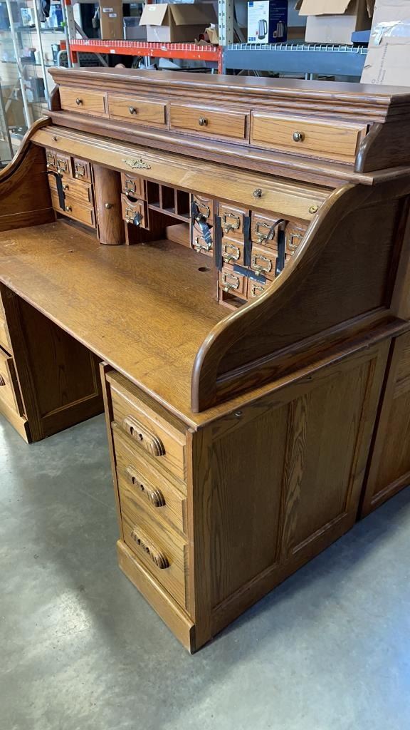 1 VINTAGE ROLLER TOP OFFICE DESK