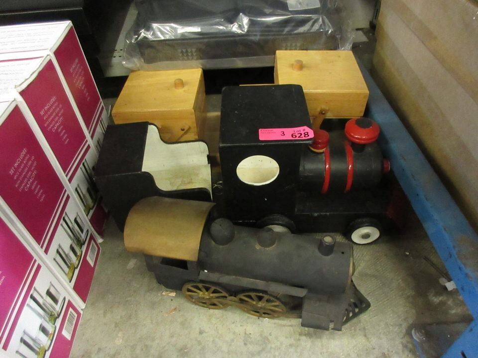 1 Wood & 1 Metal Train Engine & Vintage Sewing Box