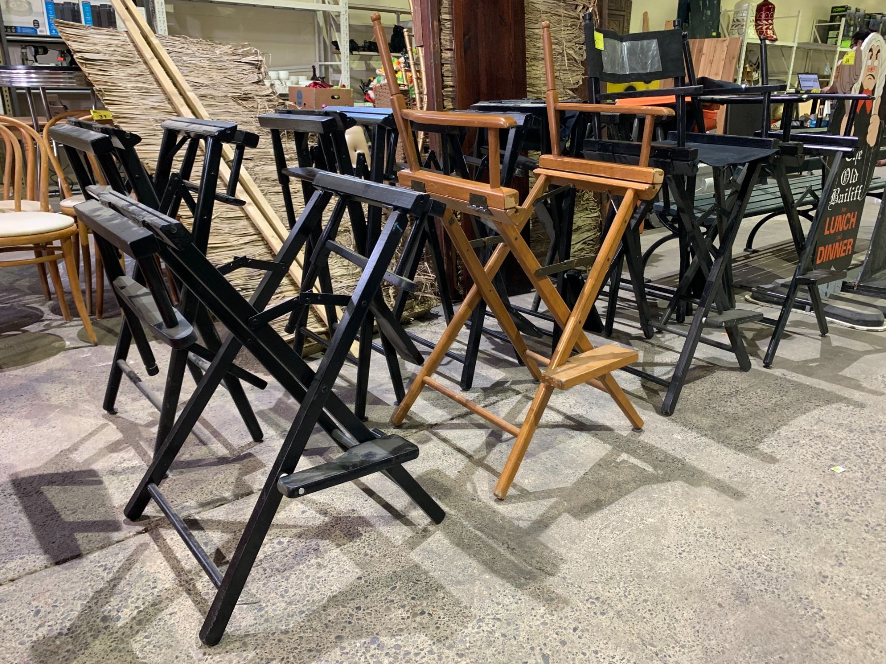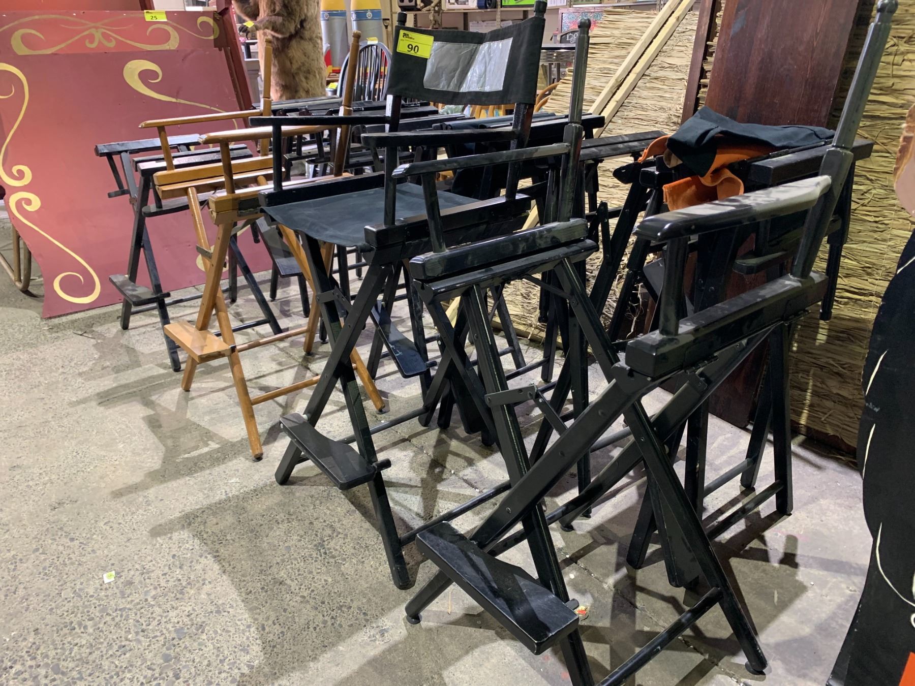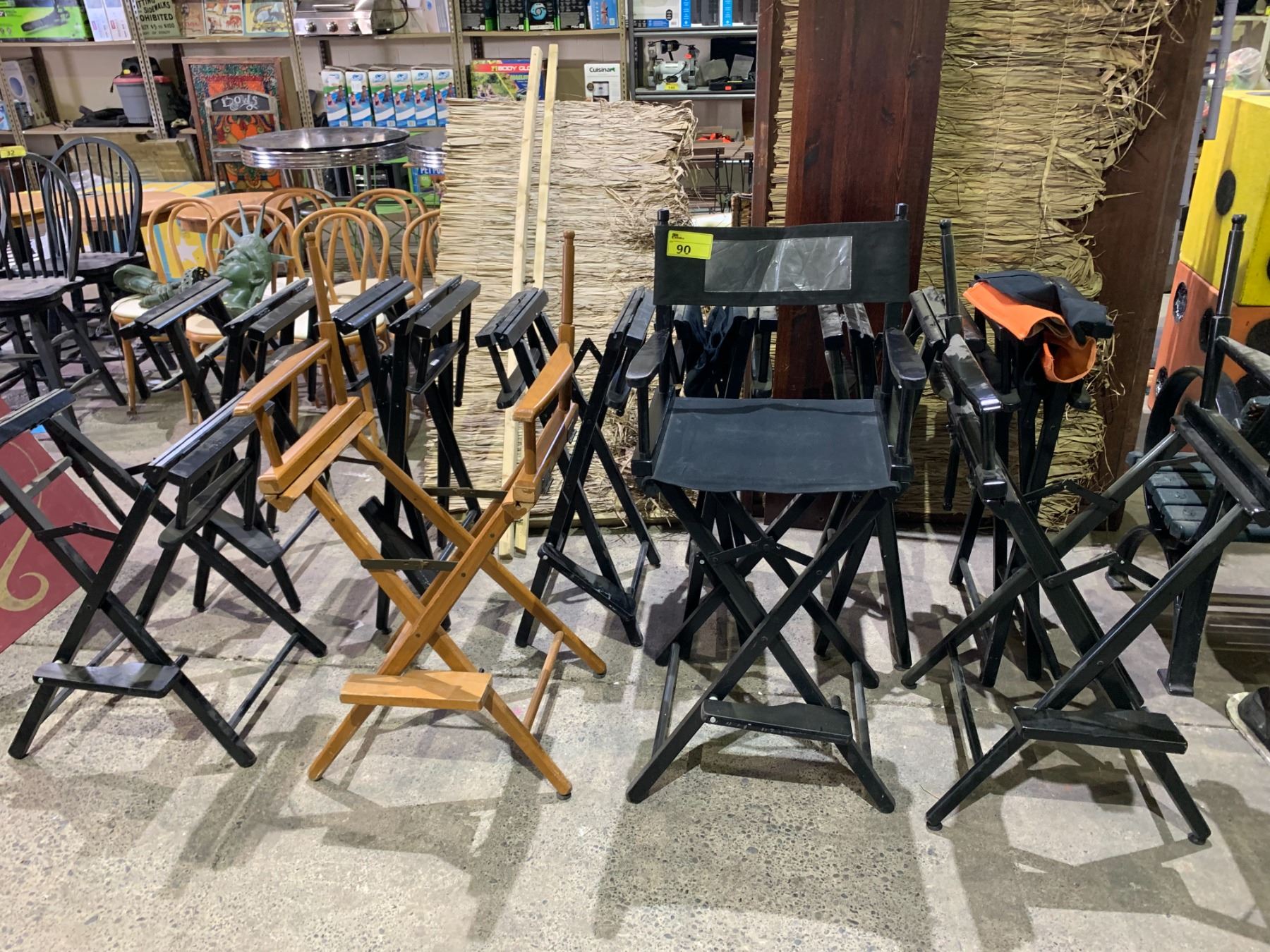 10 ASSORTED FOLDING DIRECTOR'S CHAIRS (MISSING MANY SEATS/BACKREST LINENS)