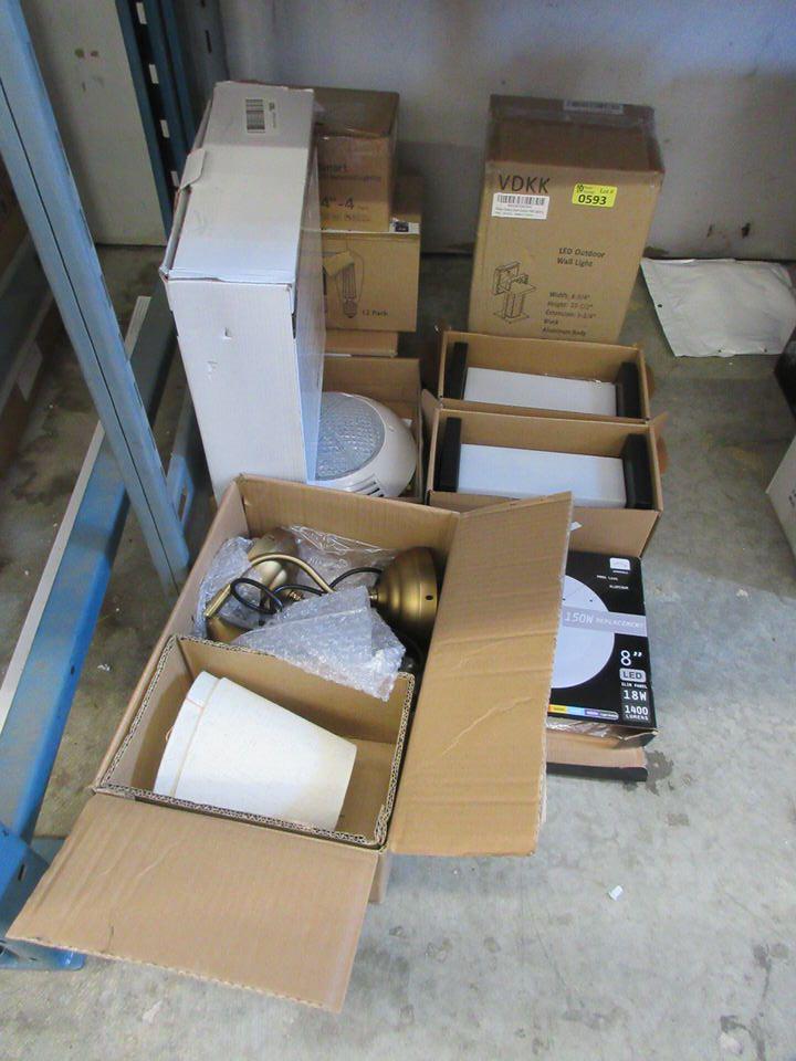 Plug in wall sconces, ceiling lights, assorted bulbs, and outdoor wall sconces.