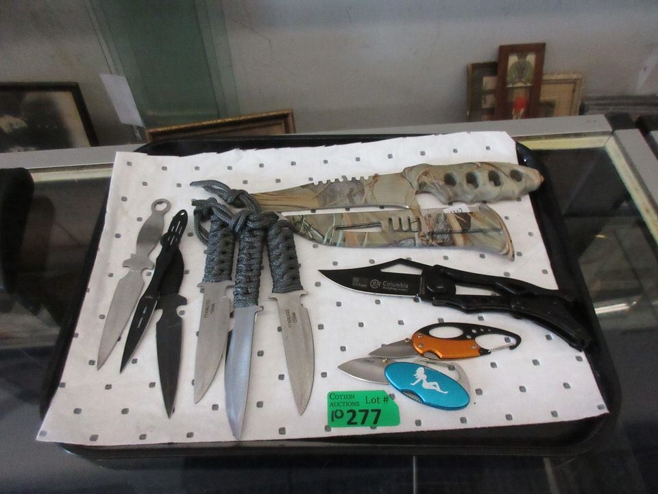 3 Throwing knives, 1 Columbia folding knife, 2 pocket knives and 3 knives with 3.5" blades.