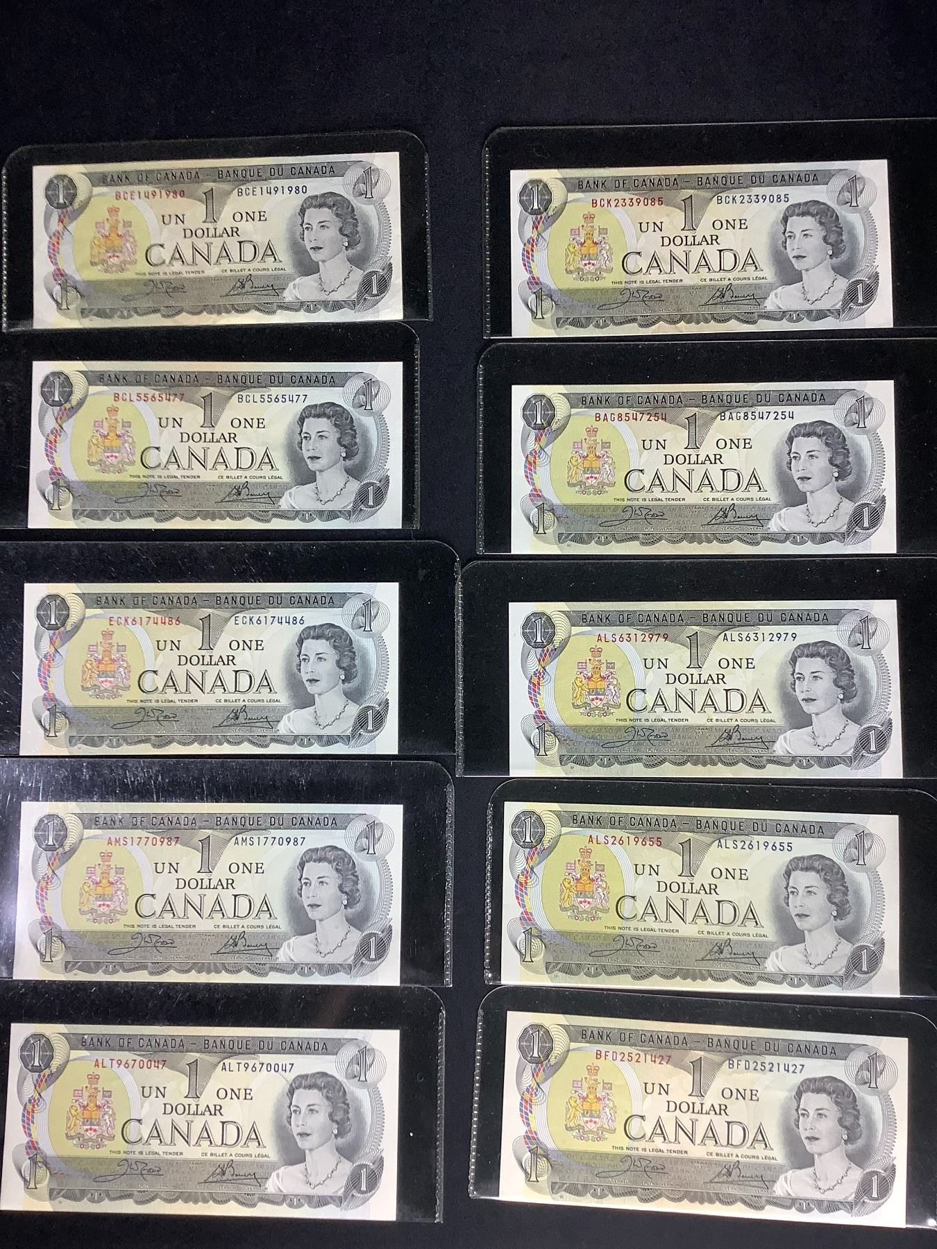 10 BANK OF CANADA 1973 $1 BILLS