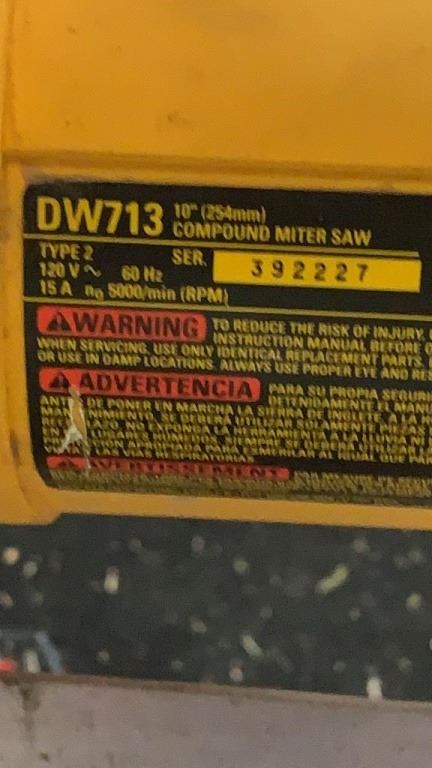 10" DEWALT COMPOUND MITRE SAW DW713 TESTED AND WORKING