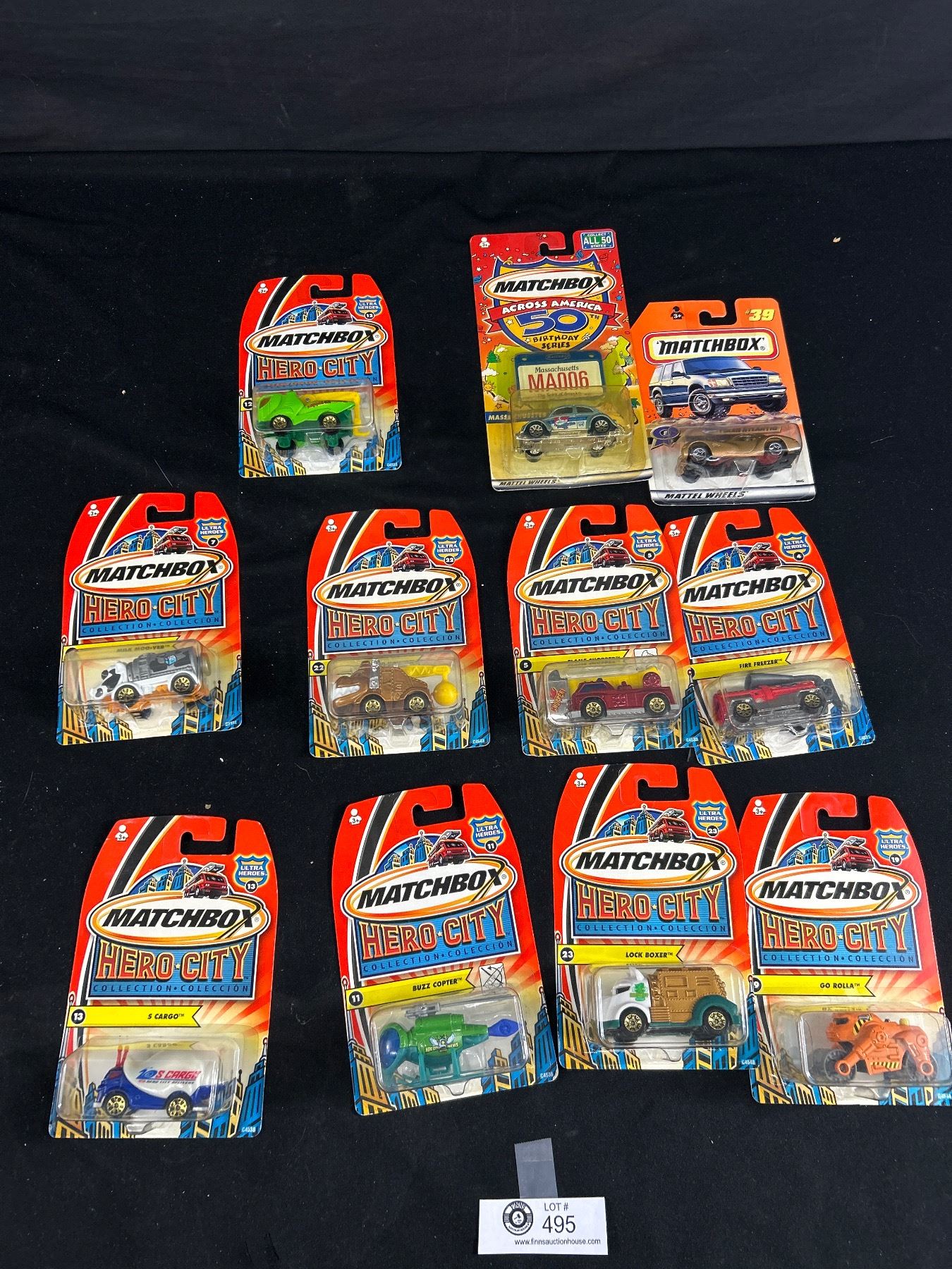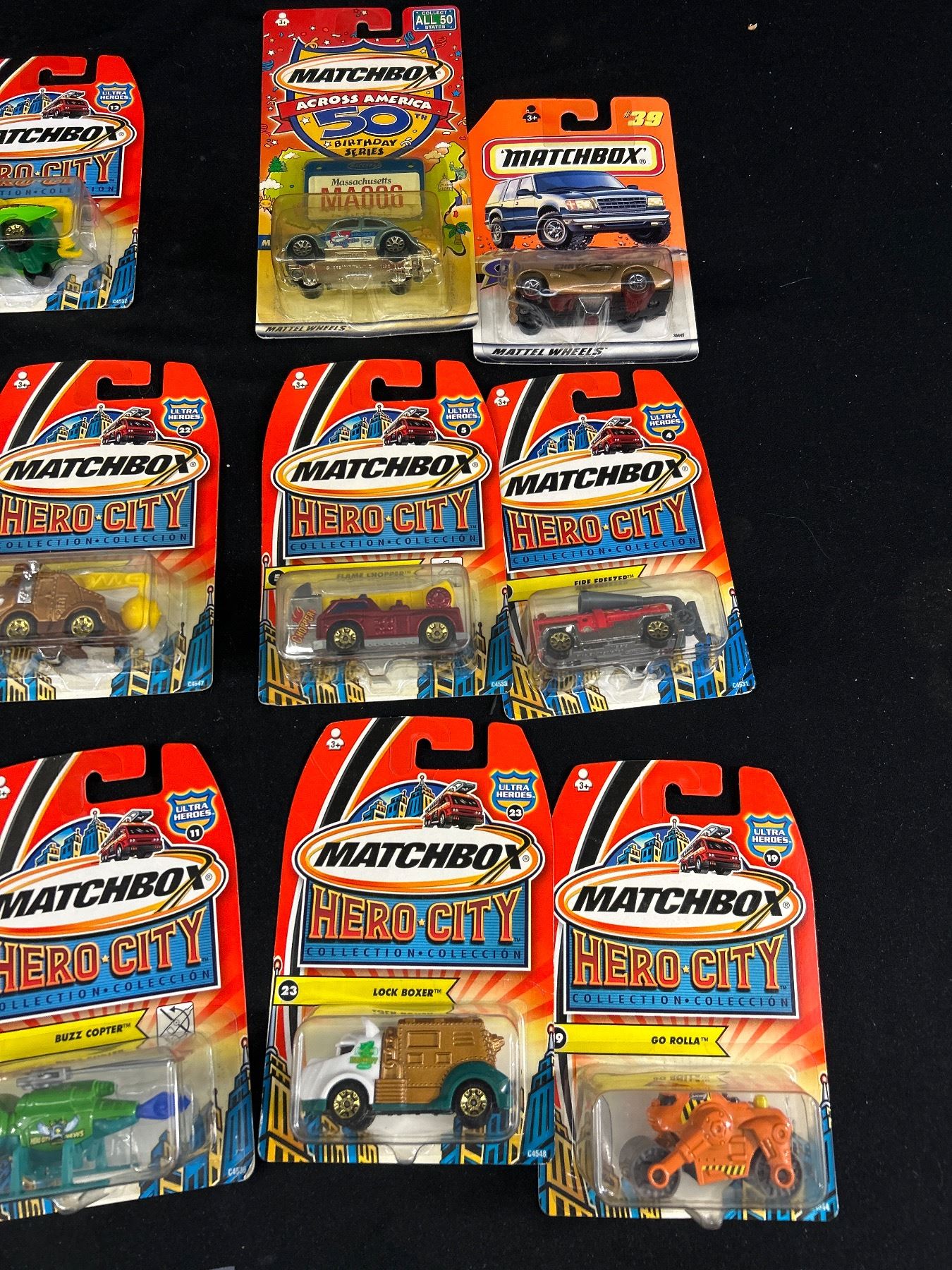 10 "Hero City" Match Box Collector Cars & 1 "Across America 50th Birthday Series"