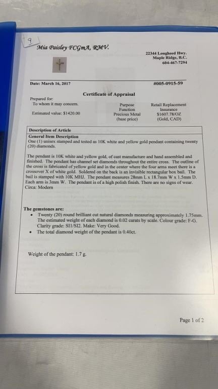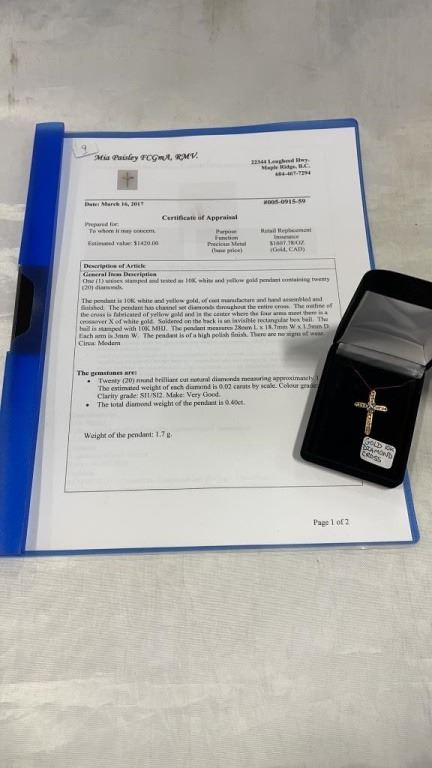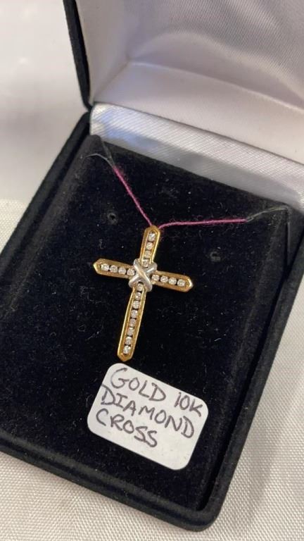10 KT GOLD DIAMOND CROSS PENDANT .40CTW . 20 DIAMONDS WITH $1420 APPRAISAL