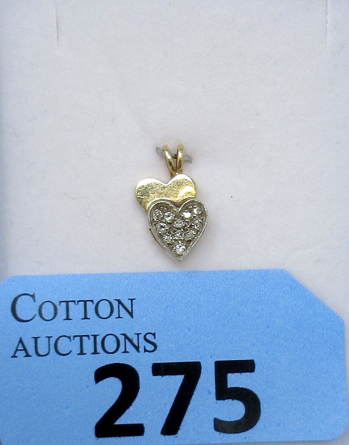 10 KT Gold and Diamond Double Heart Pendant