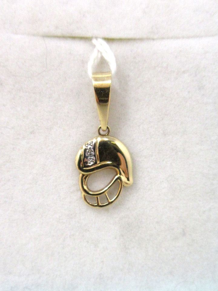 11 mm x 15 mm pendant / charm has an accent diamond in the helmet. Total weight including diamond: 1 gram