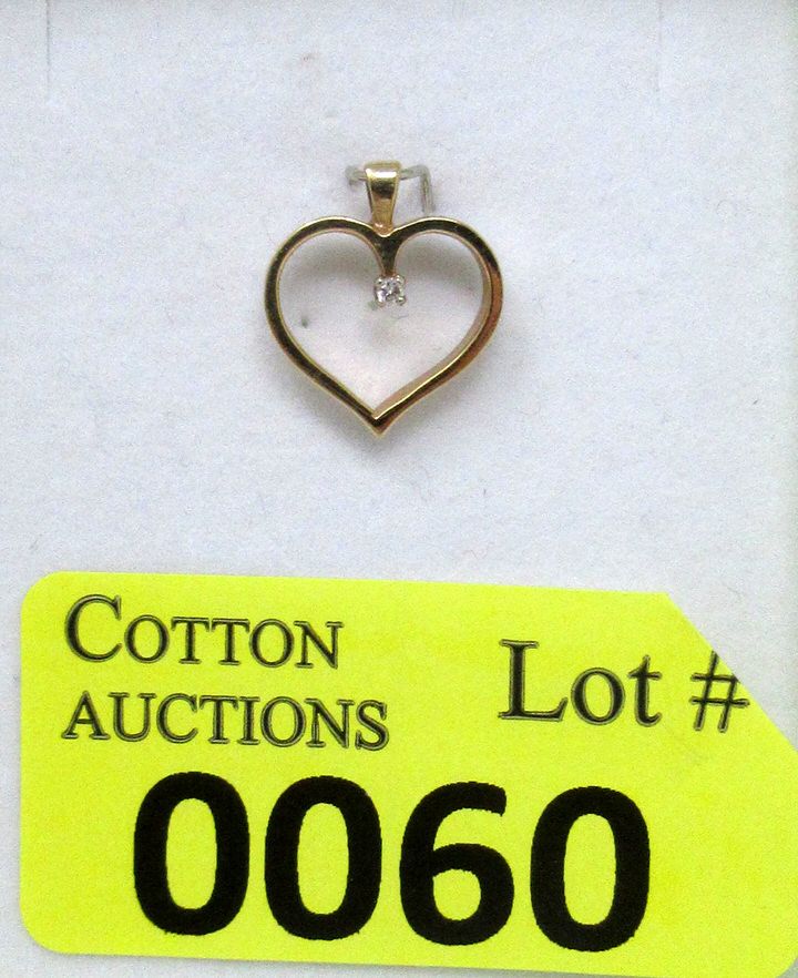 Solitaire diamond accent at the top of the heart. Pendant measures 2.8 x 15 x 17.4 mm (including bale). Total weight including diamond: 1.7 grams.