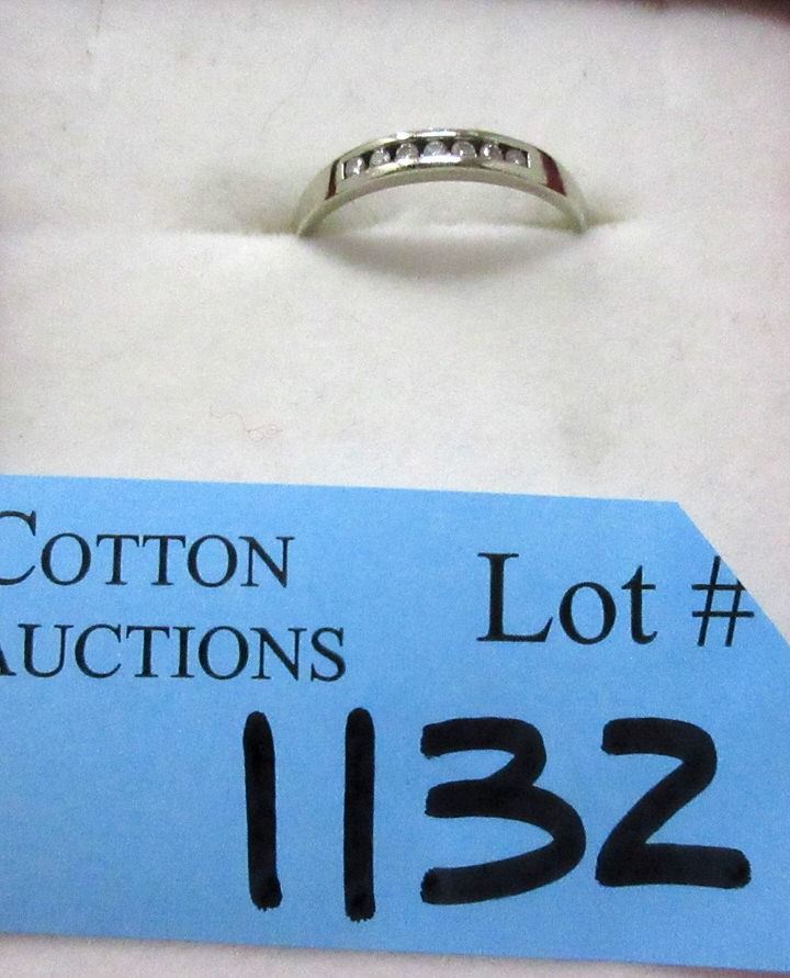 Size 7. Band is 2.8 mm wide and has 7 channel set faceted diamonds totaling .11 CTW. Total weight of ring including diamonds: 1.4 grams.