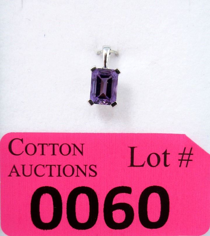 Emerald cut amethyst pendant measures 5.8 mm x 8mm.