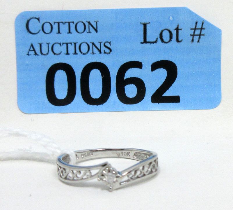 .02 Carat Diamond (Grade I/I3) set in a filigree band. Center of ring is 4.7 mm. Total weight including diamond: 1.1 gram.