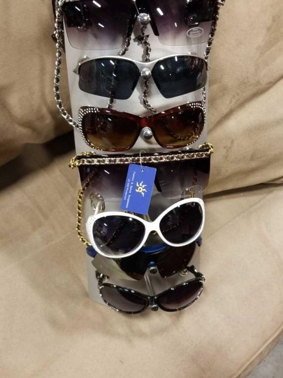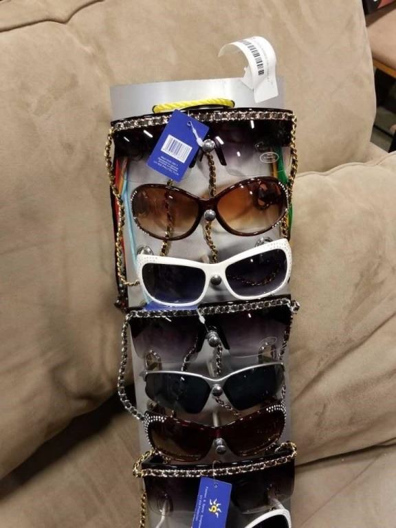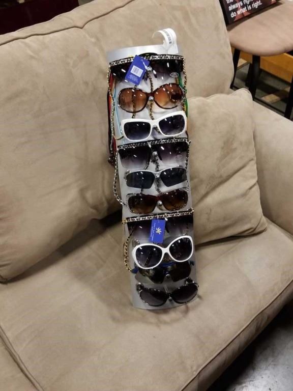 10 NEW PAIRS SUNGLASSES ON DISPLAY RACK