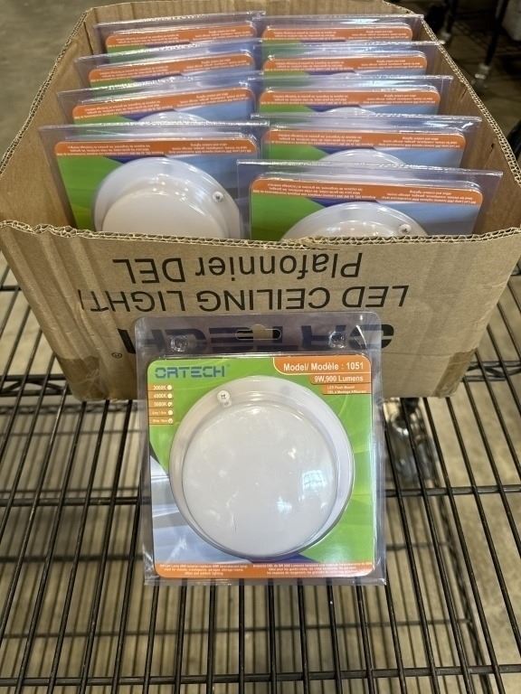 10 NEW WHITE ORTECH LED FLUSHMOUNT 900 LUMEN CEILING LIGHTS, IDEAL FOR CLOSETS, GARAGE, ATTIC, AND O