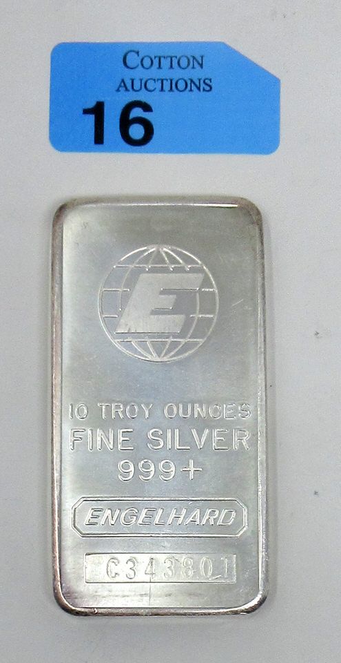 10 Oz .999+ Silver Engelhard Bar
