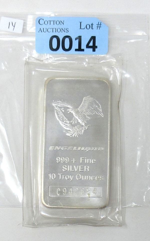 10 Oz. .999+ Silver Engelhard Eagle/Flag Bar