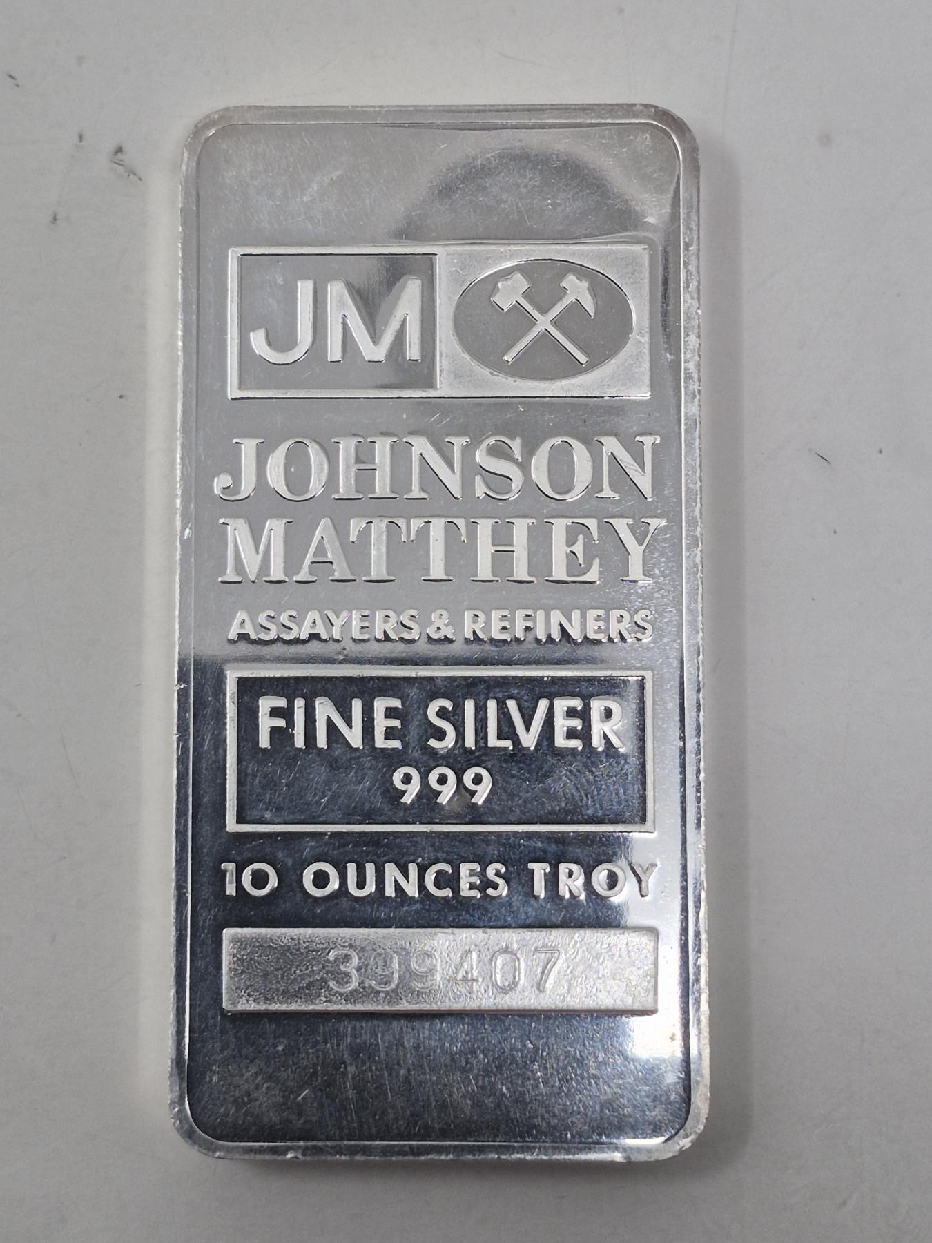 10 Oz .999 Silver Johnson Matthey Bar