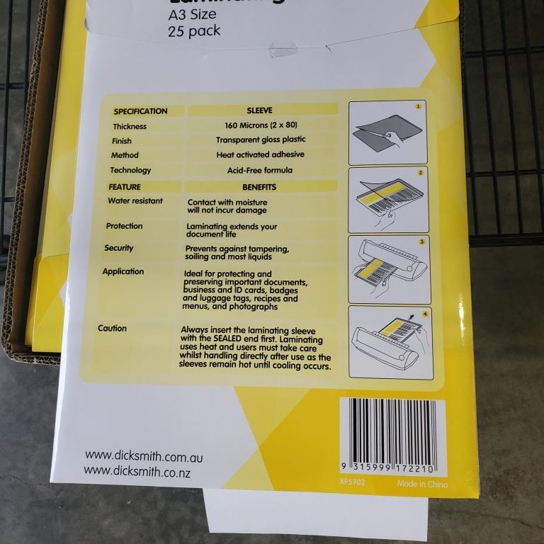 10 PACKS OF 25 DICK SMITH LAMINATING SLEEVES A3 SIZE 250 SLEEVES TOTAL