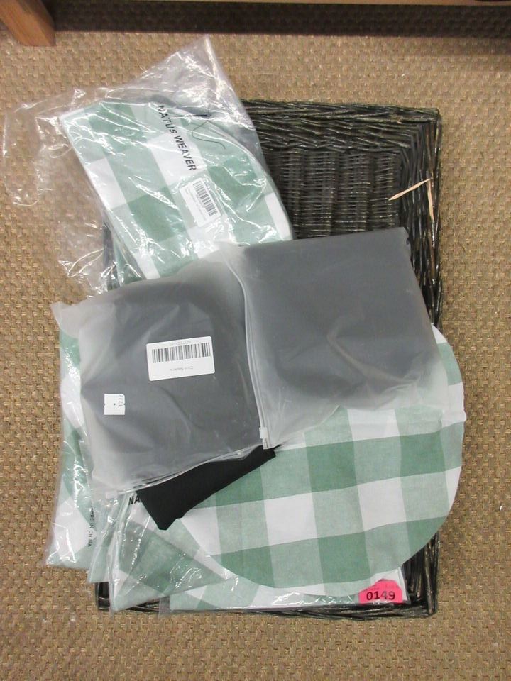 2 Packs of 10 Black 18" x 18" cloth napkins and 8 packs of 4 Green 15" diameter cloth table mats.