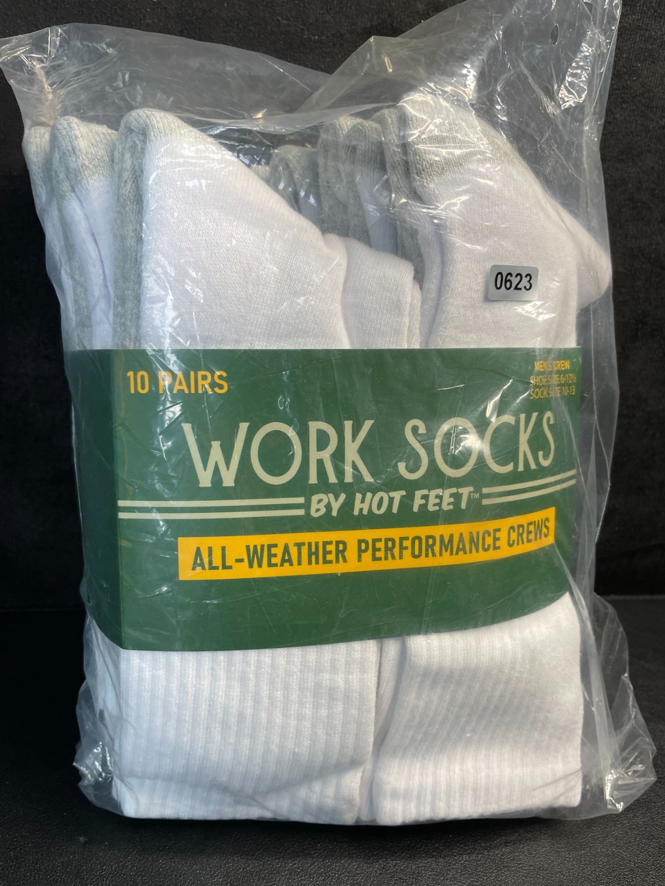 10-Pairs of HotFeet Work Socks - Men's All-Weather Performance Crew Socks (Size 10-13) - New