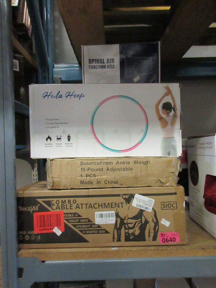 Hula hoops, ankle weight, combo cable attachment & traction belt