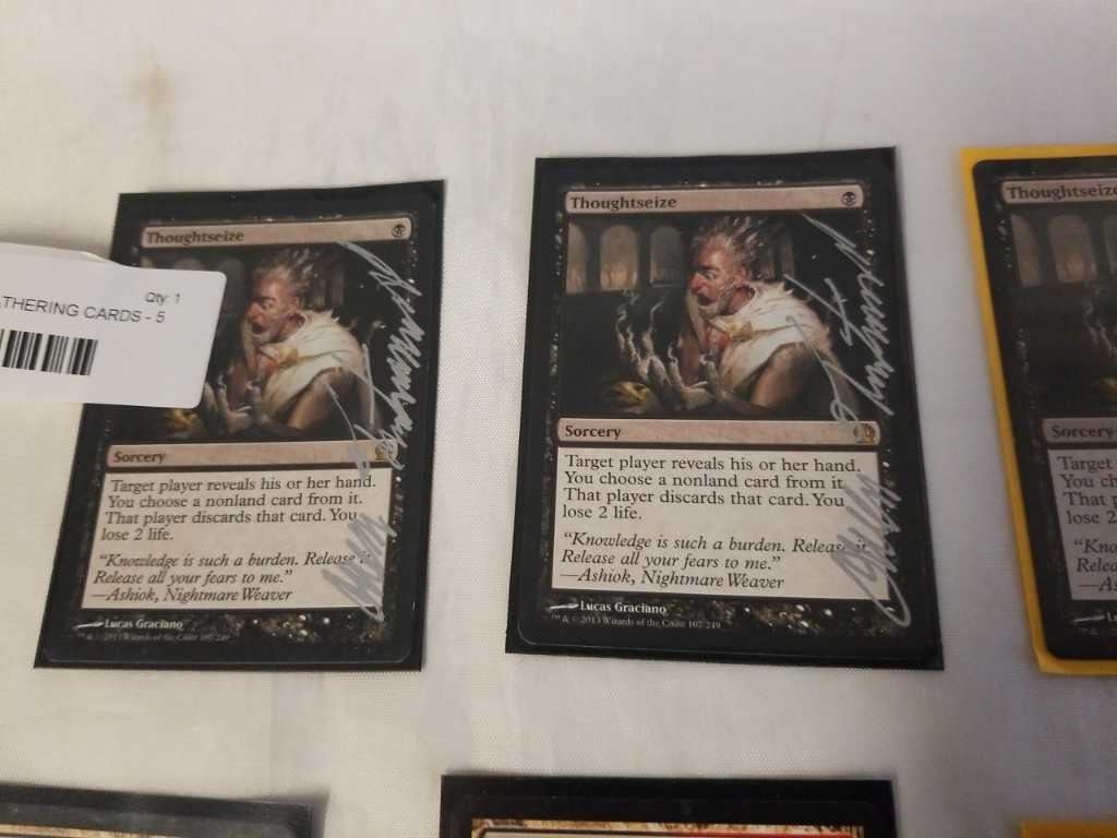 10 RARE MAGIC THE GATHERING CARDS - 5 THOUGHTSEIZE 2 ARE SIGNED, 5 DUAL LANDS BLOOD CRYPT, OVERGROWN